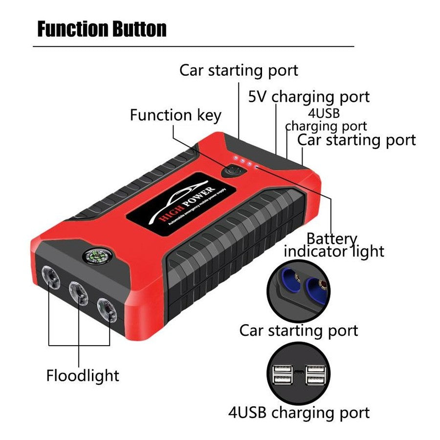 With an enormous 99,800mAh battery, this compact unit can jump-start your car, SUV, 4WD, boat, or motorbike in seconds — without needing roadside help. Plus, it doubles as a 4-port power bank, floodlight, SOS beacon, and emergency survival tool.